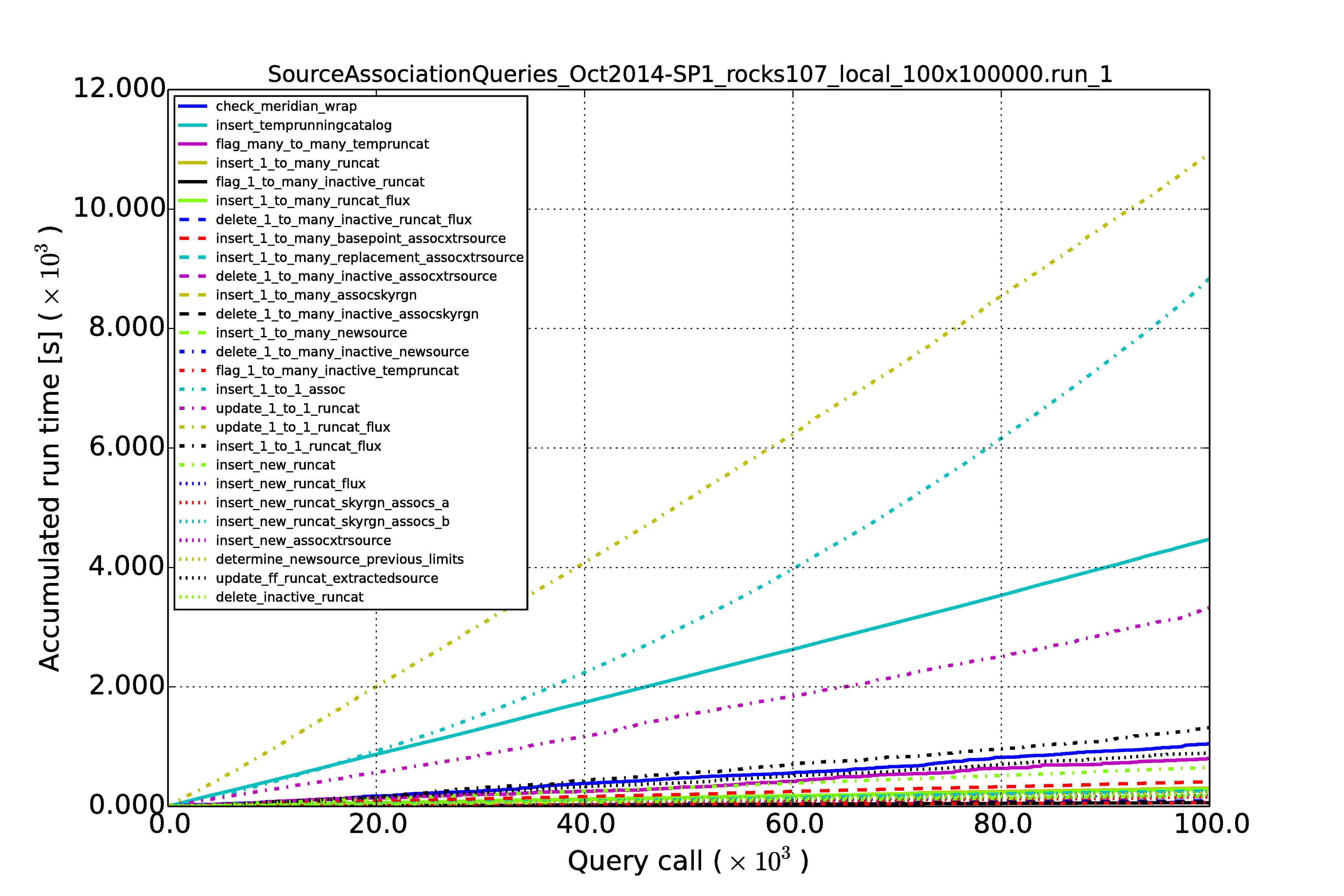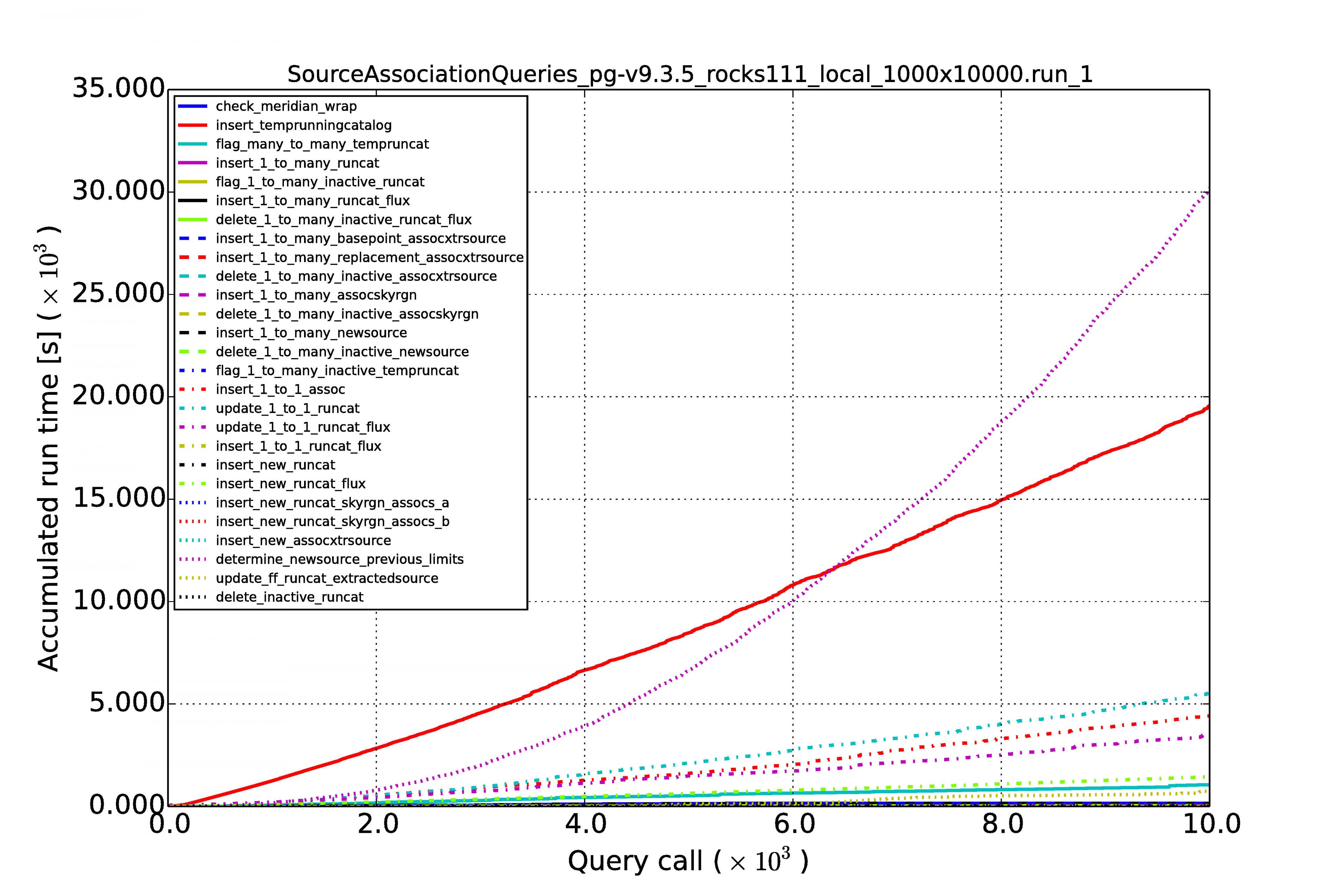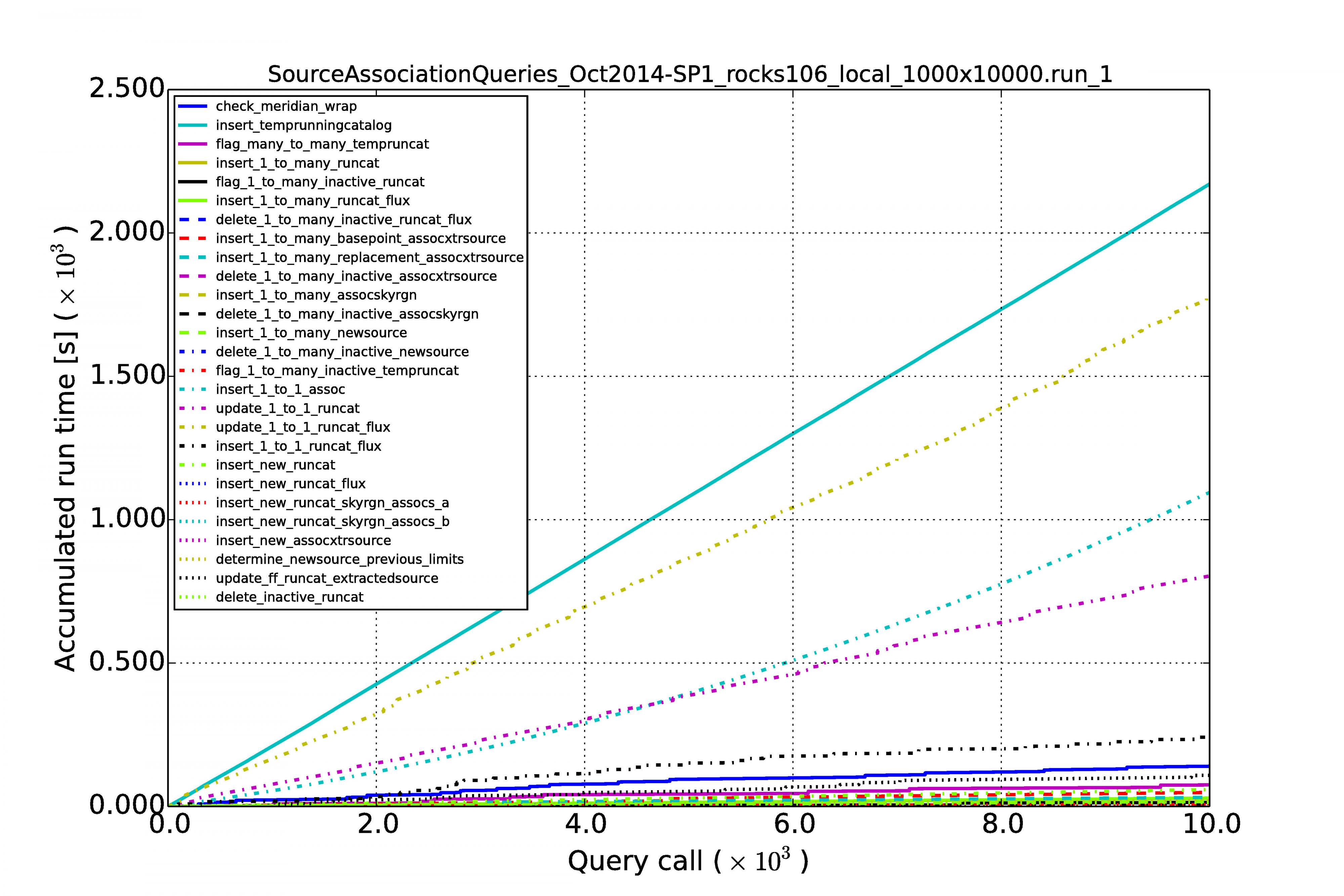 We can see that for MonetDB all the source association queries run in 80% of the image cadence time, which is acceptable.