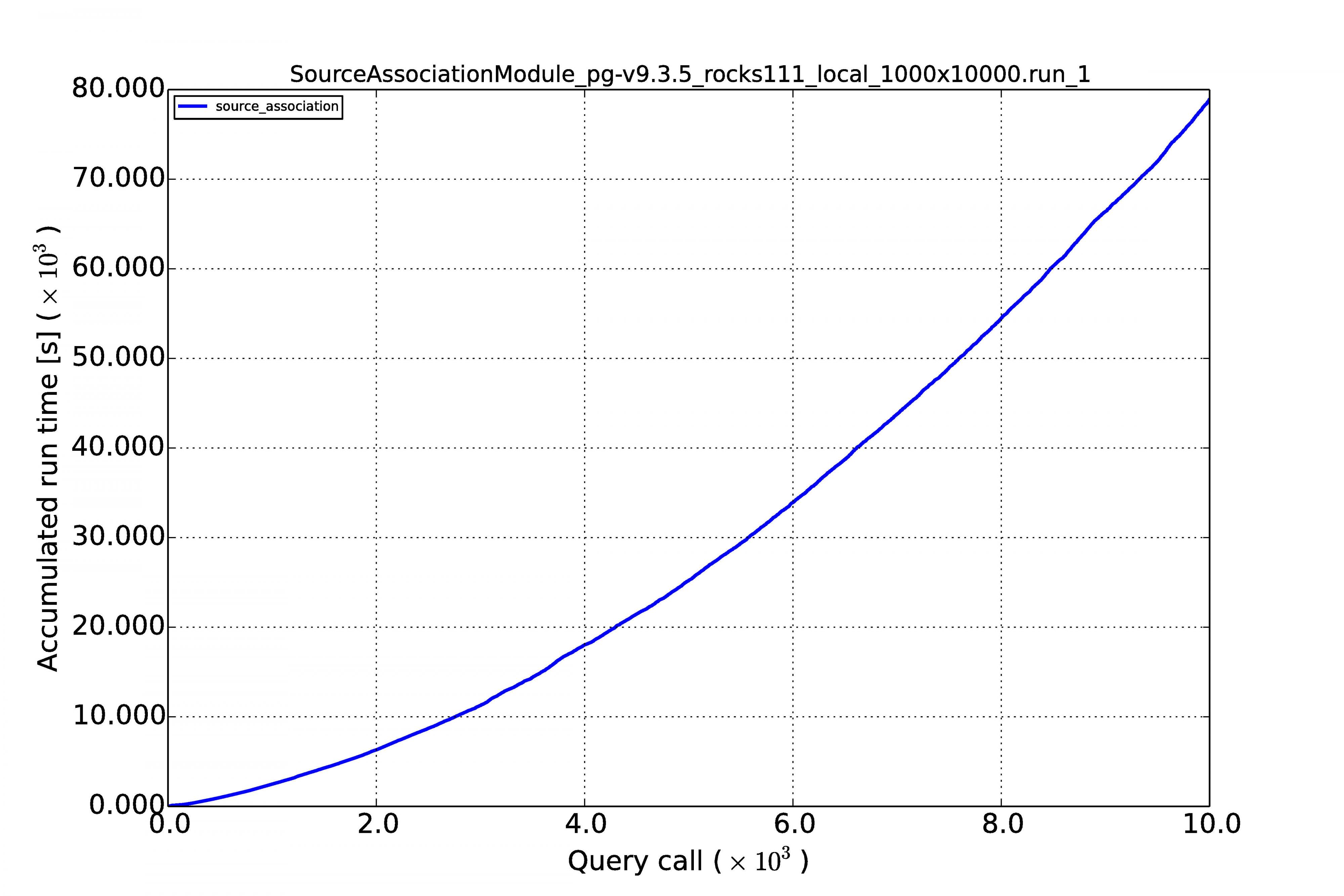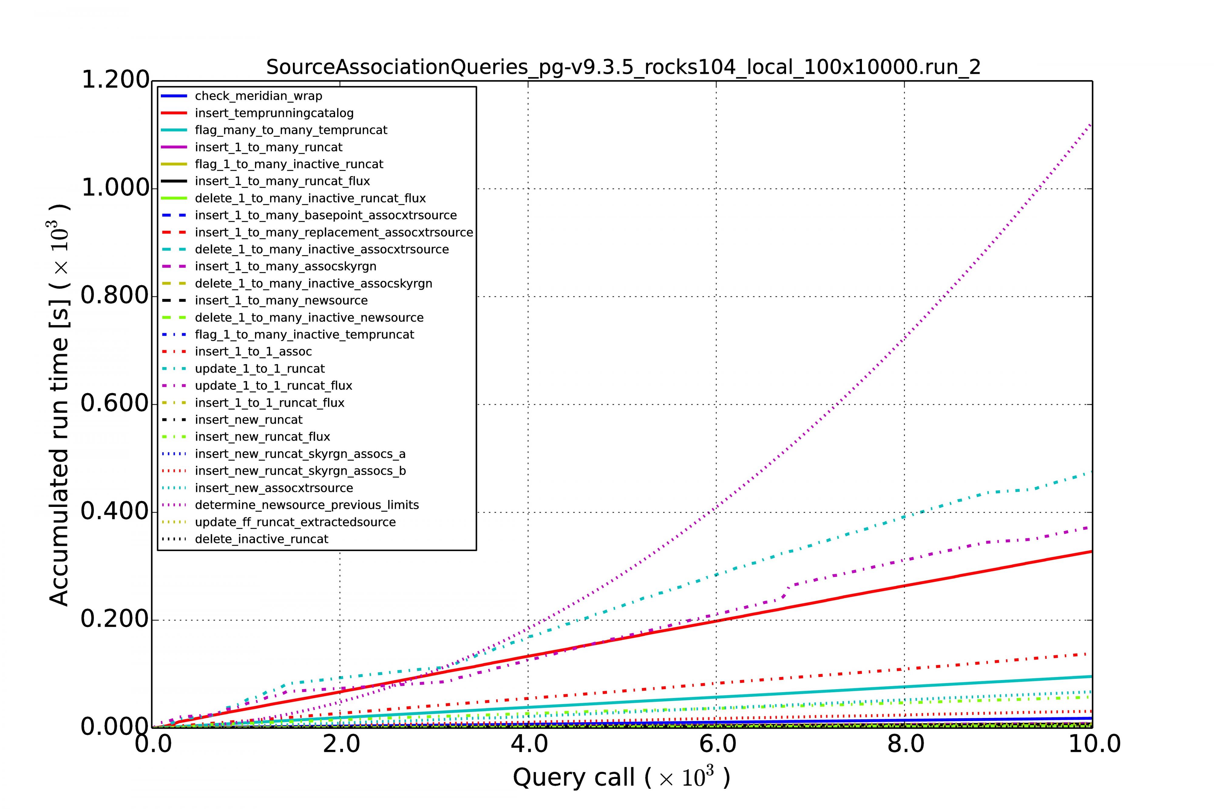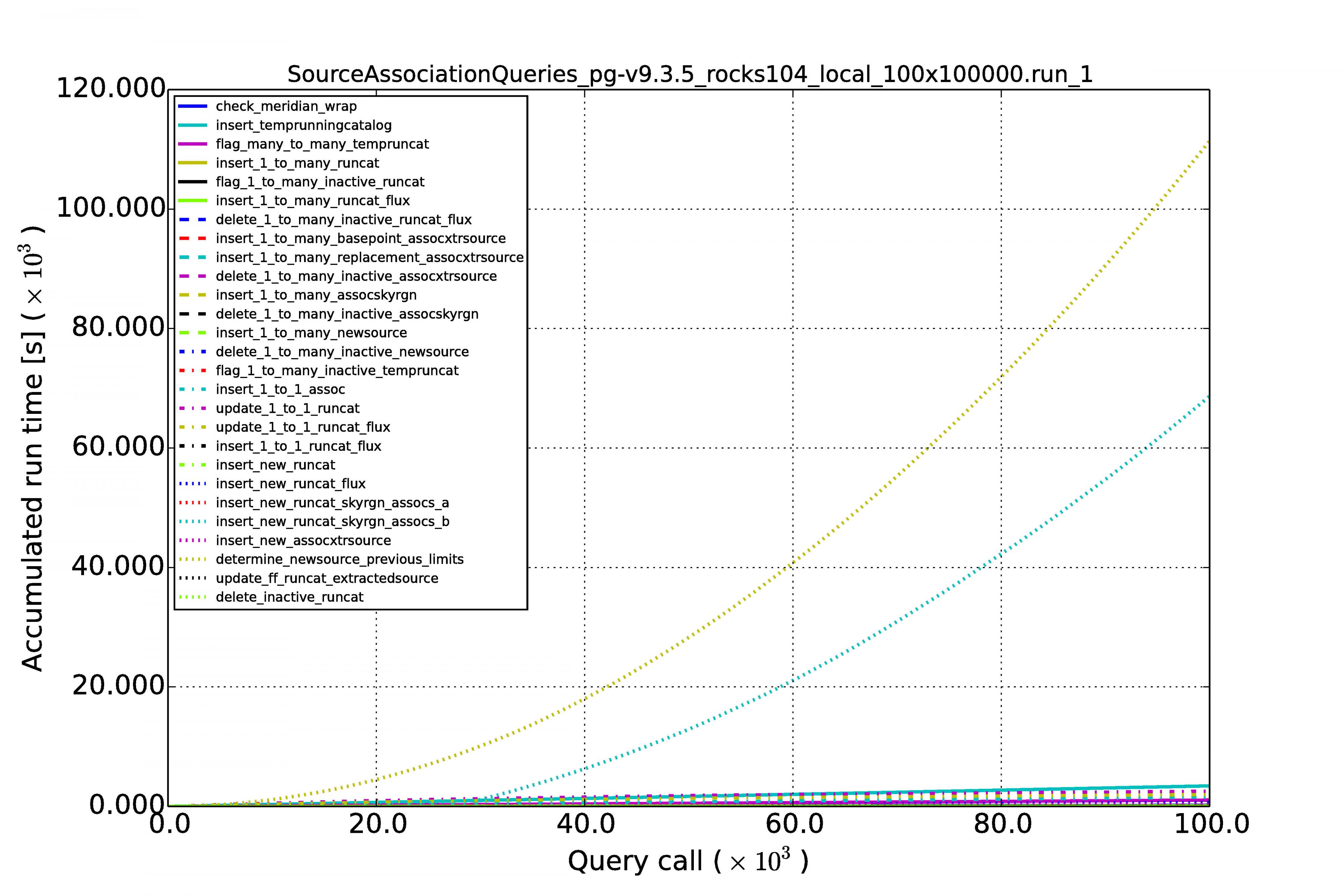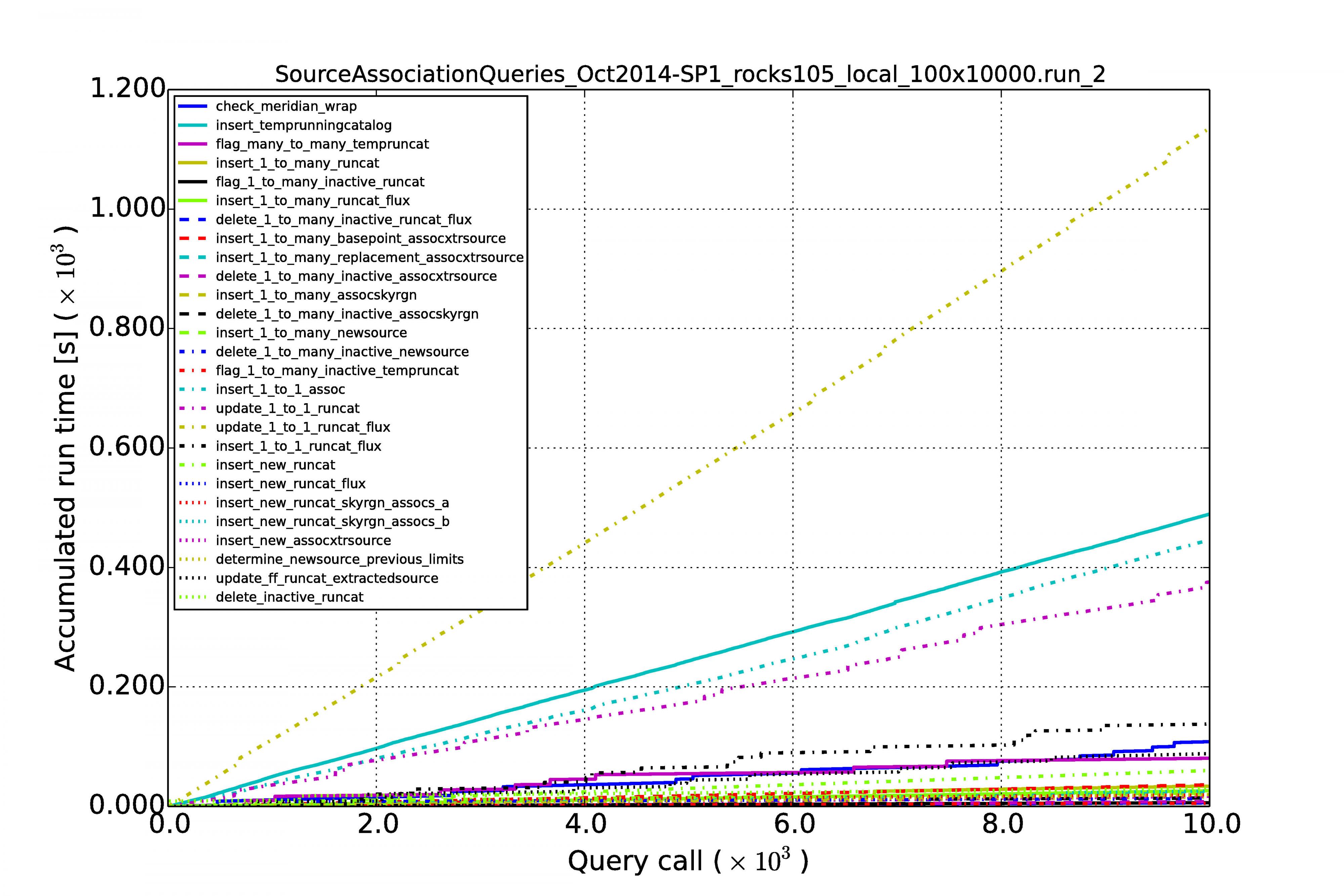 We can see that for MonetDB all the source association queries run in 80% of the image cadence time, which is acceptable.